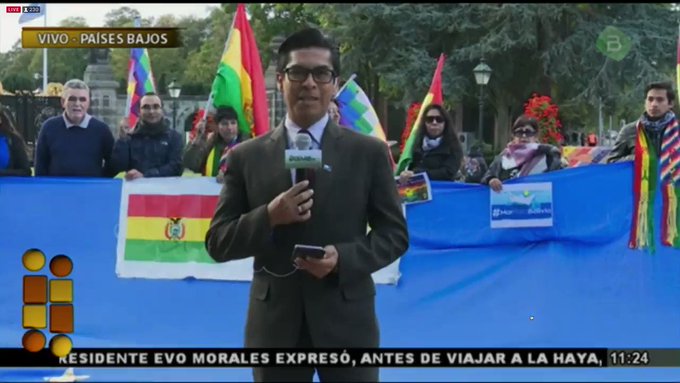 #MarParaLosPueblos | Bolivianos que residen en distintos países de Europa se dieron cita en #LaHaya para expresar su apoyo a #Bolivia, horas previas al fallo de la Corte Internacional de Justicia. #MarParaBolivia