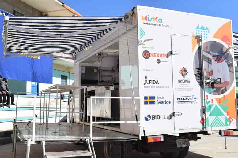 “Vamos a iniciar con cursos de capacitación para jóvenes y adultos mayores a 15 años. Este Centro de Educación Alternativa móvil llegará a los pueblos, a las comunidades donde nuestros hermanos y hermanas de áreas rurales podrán pasar cursos de gastronomía”, informó el director general de Educación Alternativa del Ministerio de Educación, Fernando Yujra en el acto de inauguración.